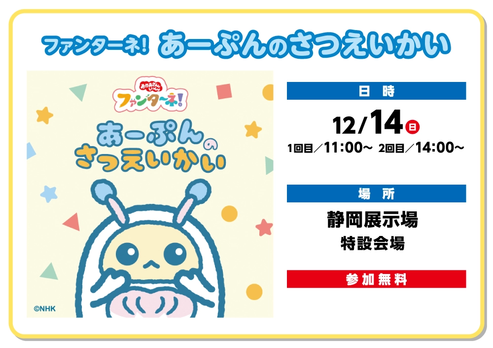 NHK Eテレ「おかあさんといっしょ」内の人気コーナー「ファンターネ!」のあーぷんが着ぐるみになって登場します。
