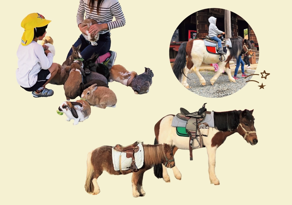 餌やり体験や、ポニー乗馬体験もできるよ!