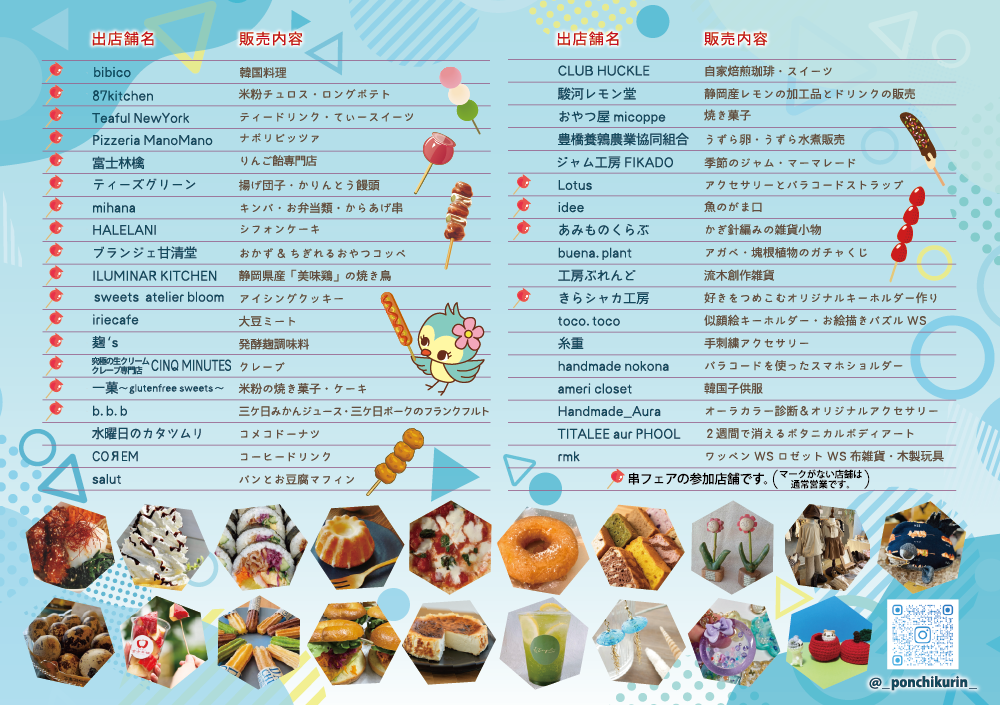 | 備考 | 最新情報はインスタをチェック♪ @_ponchikurin_ ※イベント内容は予告なく変更することがございます。 |
