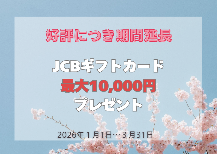 【好評につき期間延長!】JCBギフトカード最大10,000円プレゼント♪