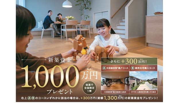 日頃のご愛顧を感謝しまして、ミサワホームで総額1000万円分の新築資金をご用意しました。
