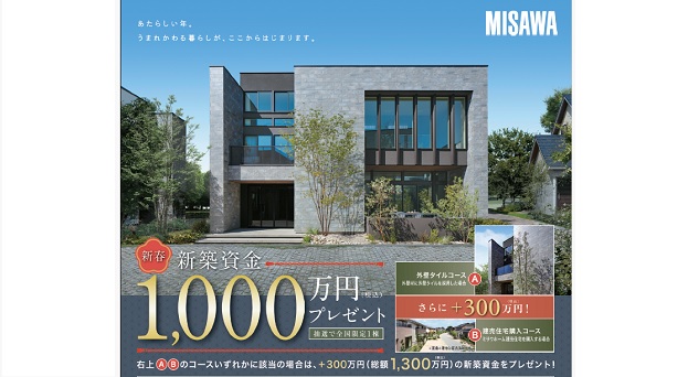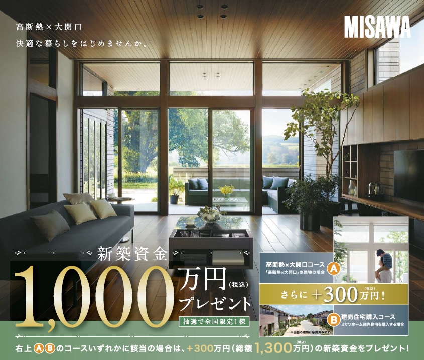 日頃のご愛顧を感謝しまして、ミサワホームで総額1000万円分の新築資金をご用意しました。
