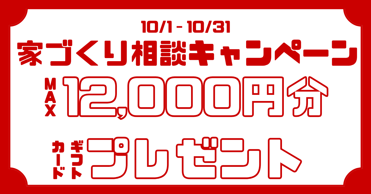 【一条工務店】家づくり相談キャンペーン開催中!今だけギフトカード最大12000円分プレゼント!※住宅展示場が初めての方限定!