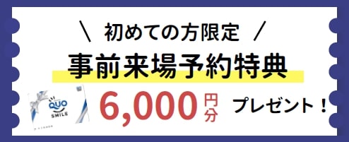 クオカード6000円分プレゼント!(※初めての方限定)枠には限りがございます。お早目のご予約お願いいたします。