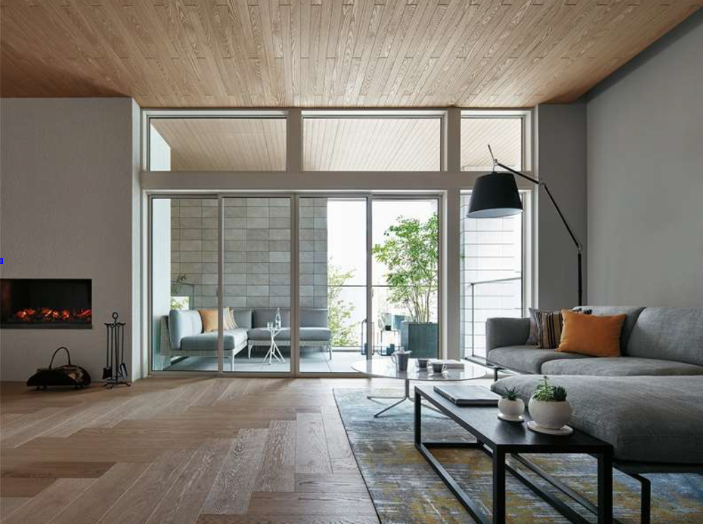 高天井の広がりが、家族の声をやさしく包み込みます。