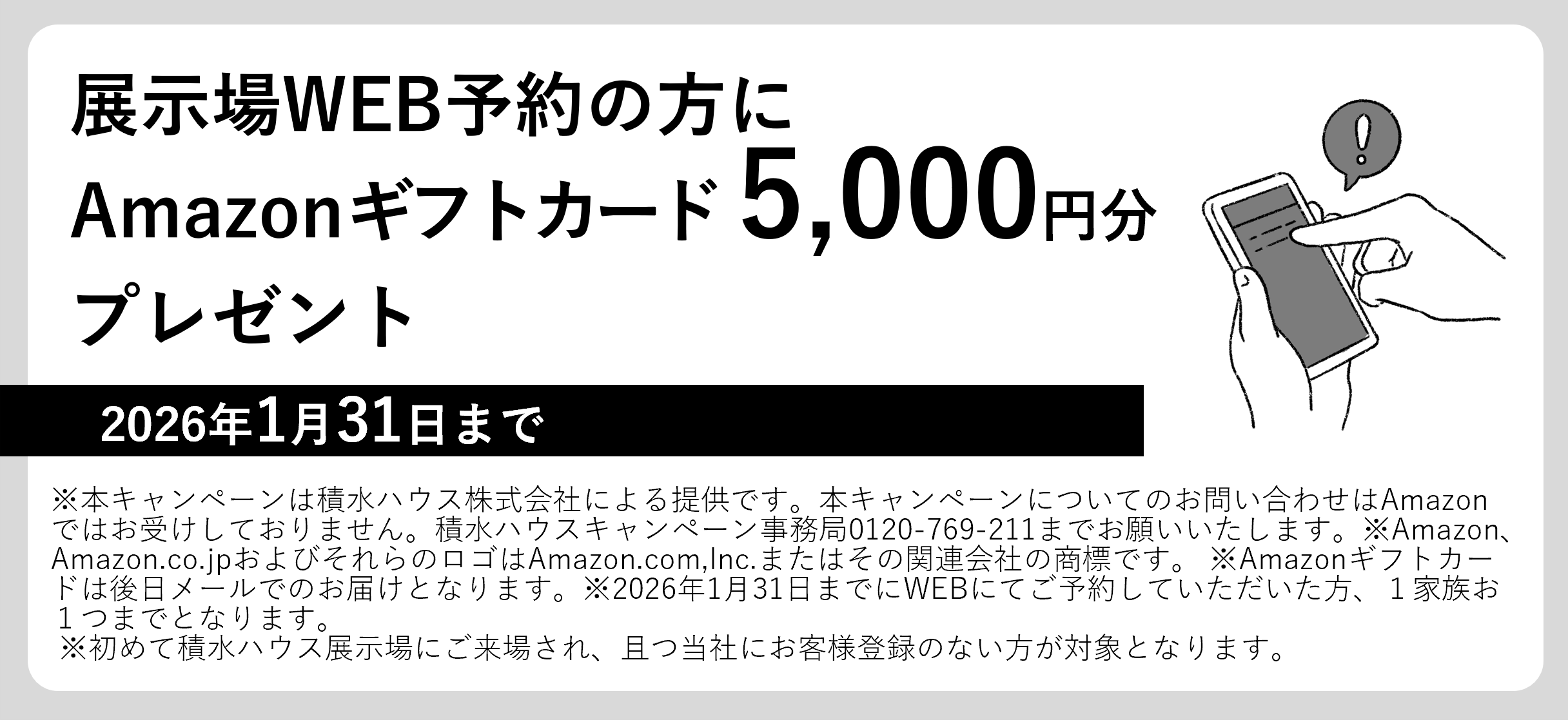 WEBにて来場予約をくださった方にギフトカード5000円分プレゼント/積水ハウスの展示場で「自分らしい暮らし」のイメージを体感しませんか?