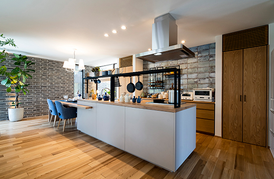 ■1階は、明るめでナチュラルな雰囲気。2階は、打って変わって、落ち着いたシックな空間を提案。