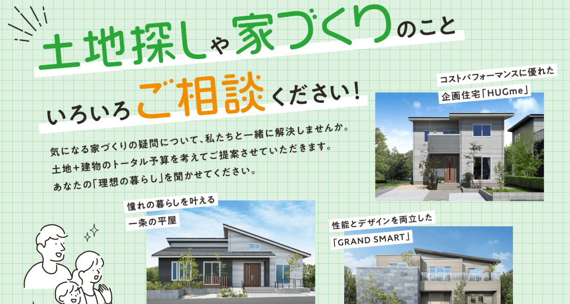気になる家づくりの疑問について、私たちと一緒に解決しませんか。土地+建物のトータル予算を考えてご提案させていただきます。