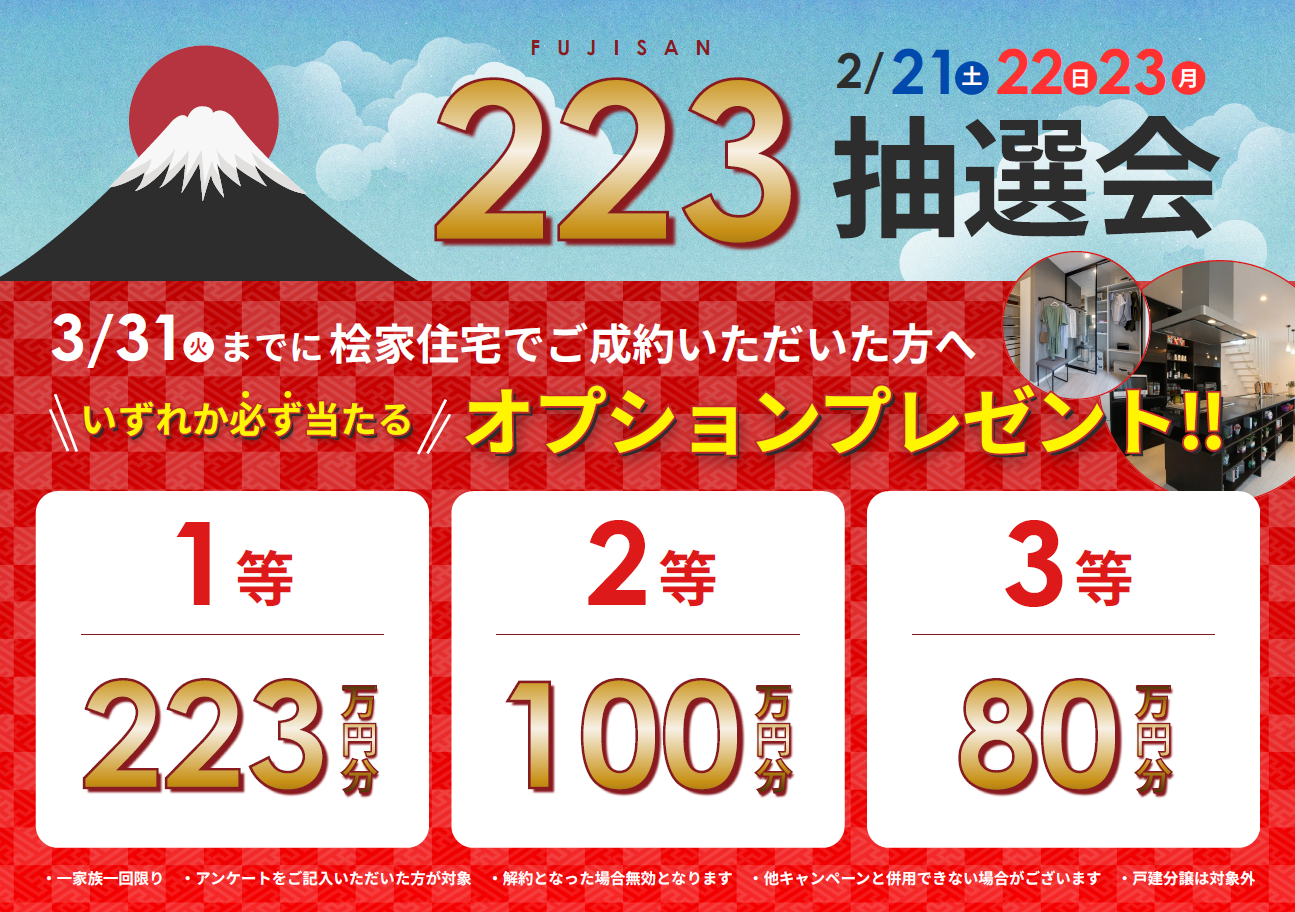 【桧家住宅】最大223万円分オプションプレゼント!空くじなしの抽選会開催!