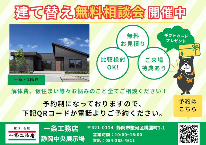 【一条工務店】建て替えかリフォームでお悩みの方いませんか?無料相談会開催!クオカード最大6000円分プレゼント中!