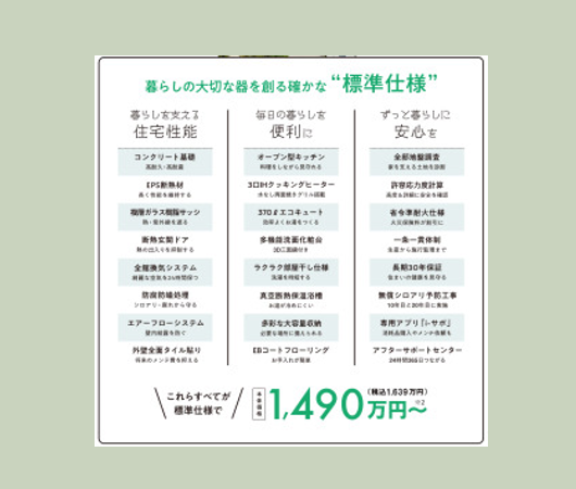 建てる時のちょうど良さだけではなく、家そのものが長くおトクに、そして心地よくお住まいいただくための大切な性能を備えています。