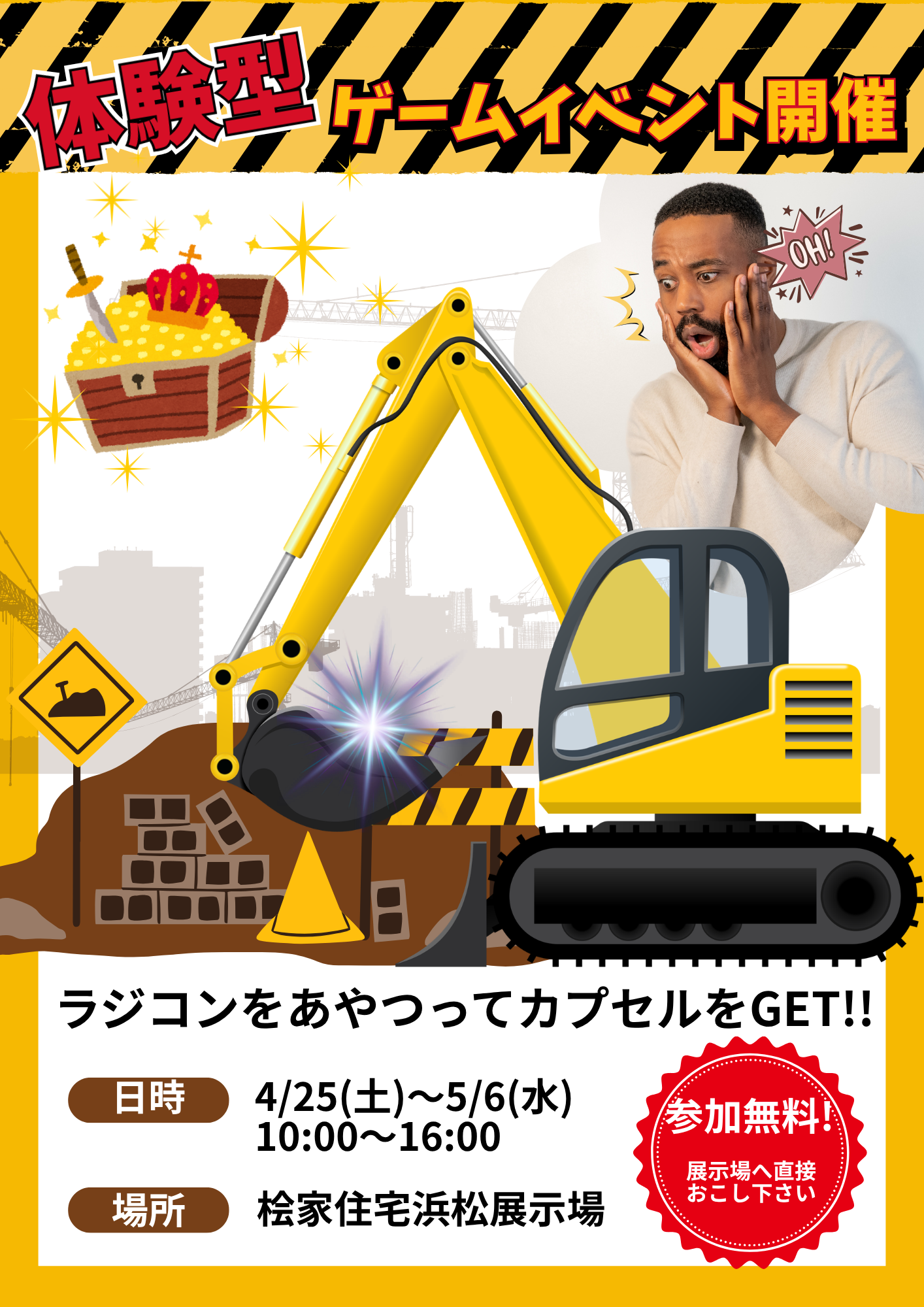 ゴールデンウィークは家族みんなで桧家住宅展示場へ! 特設の什器でカプセルをつかみ取り、中のくじでプレゼントが決まるドキドキのイベントを開催します🎉 什器をリモコンで操作してちょっぴり建築家気分が味わえるかも?! お子様なら誰でも参加OK!受付をしてそのまま挑戦できますよ♪ 何が当たるかはお楽しみ♪!ぜひご家族でお越しください!