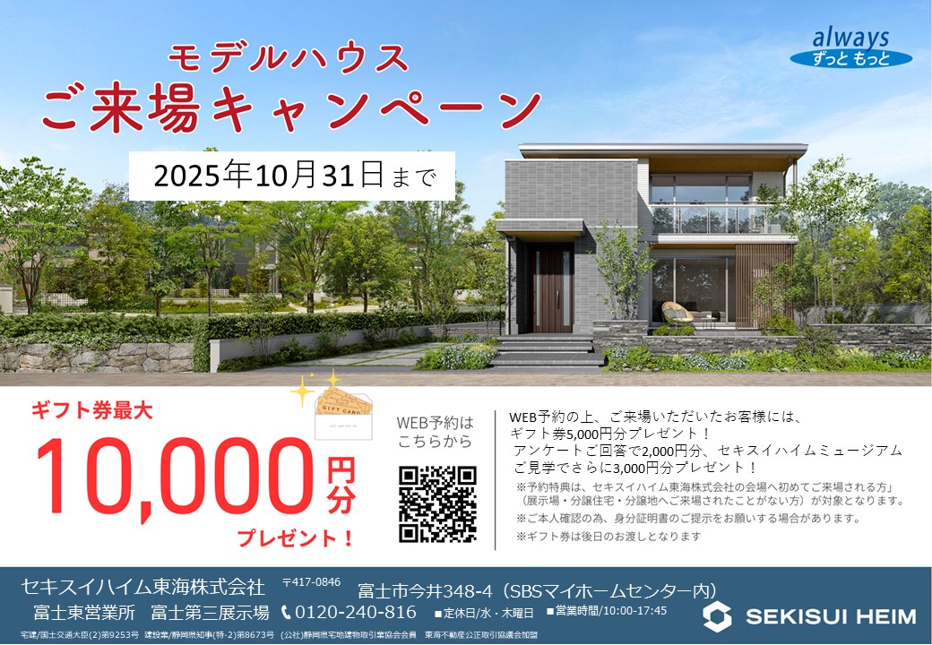 2025年10月12日(日)~10月31日(金) セキスイハイム東海㈱富士第三展示場