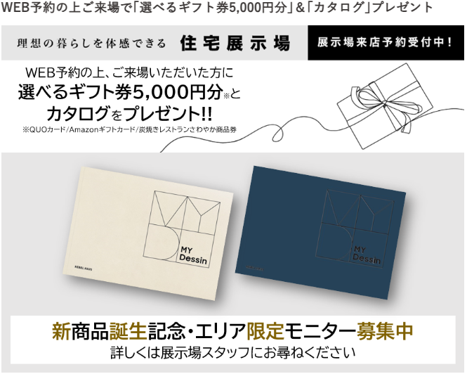 このページよりご予約のうえ、ご来場いただいたお客様には「選べるギフト券5,000円分※」と「カタログ」をプレゼント!
