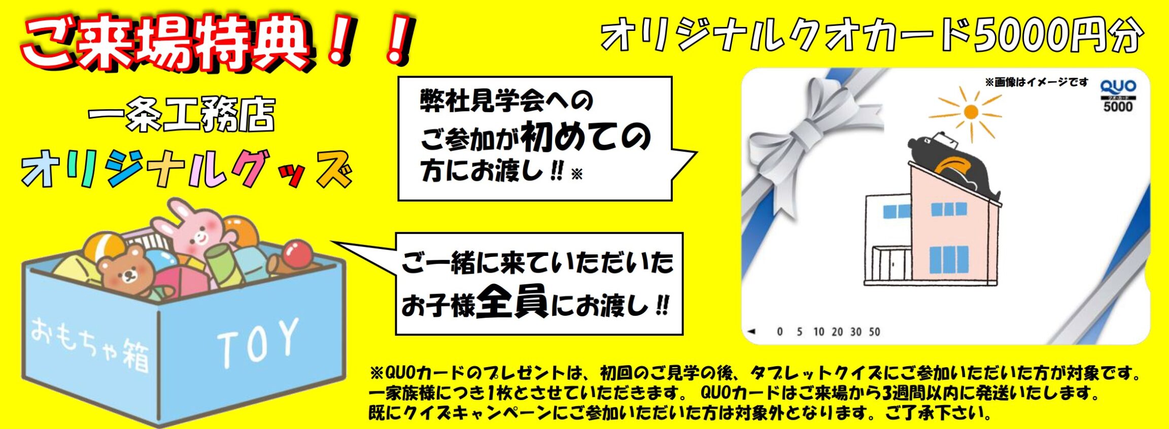 来ていただいたお子様に全員に、一条工務店オリジナルのグッズをプレゼントいたします♪