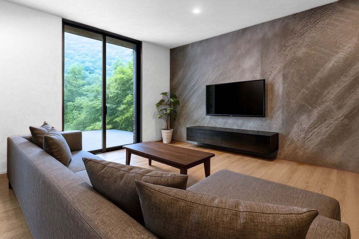 玄関を入るとnattokuオリジナルの塗壁「ユーロスタッコ(イタリア製漆喰)」がお出迎え。