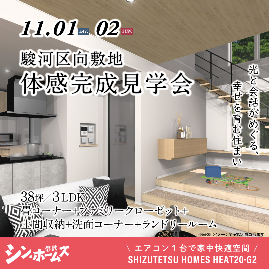 10月30日~11月9日までの期間中は完全予約制にてご案内いたします。希望日の3日前までにお電話またはページ内のフォームから静岡住宅展示場にお申し込みください。