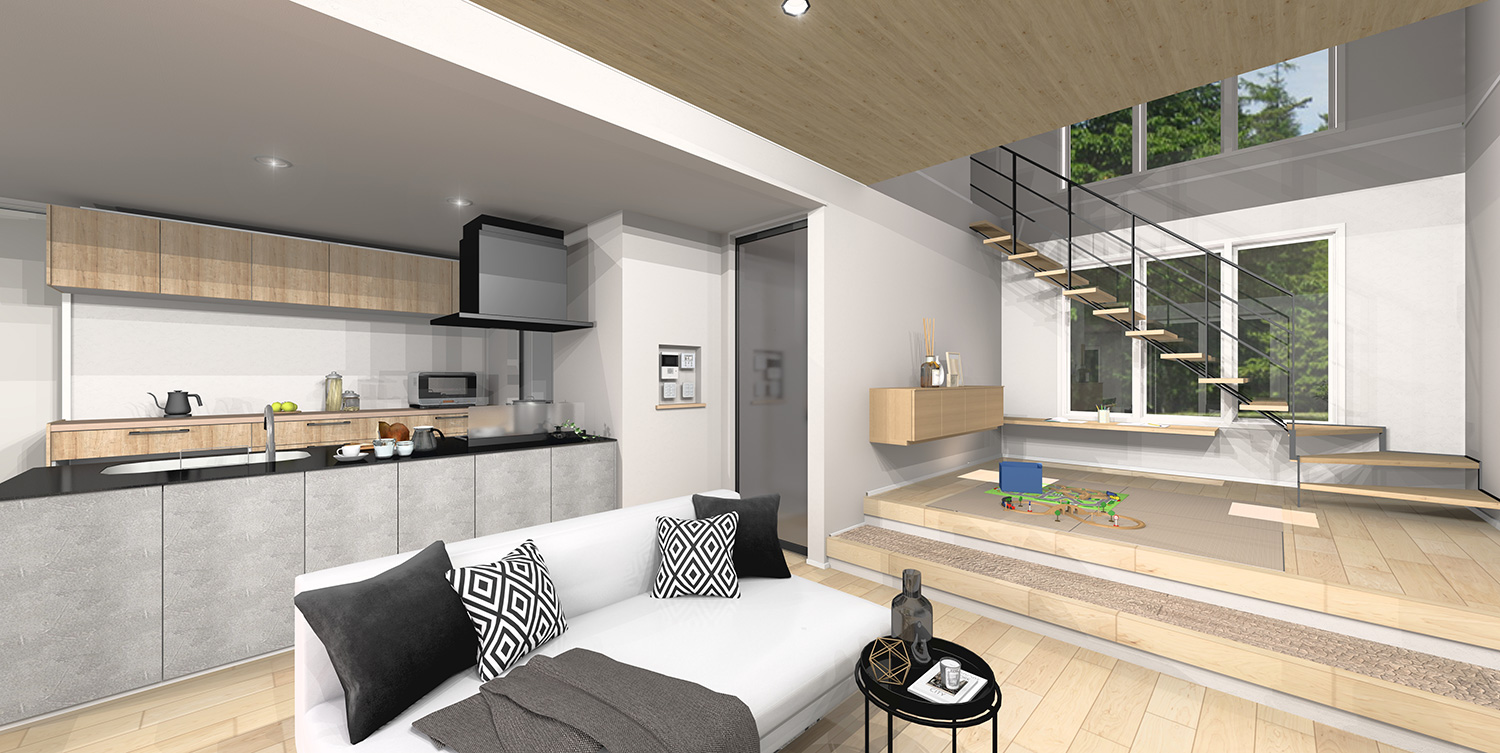 真夏も真冬もエアコン1台で快適に過ごせる高性能仕様は、光熱費を抑えながら家族の健康を守り、これからの暮らしを支えてくれる。家族それぞれがいつまでも心地よく過ごせる「未来につながる住まい」です。