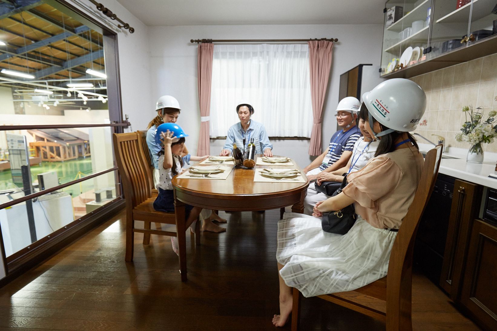 全身で住まいの性能などを体感できます。耐水害住宅の浸水を防ぐ様子などもご覧いただけます。