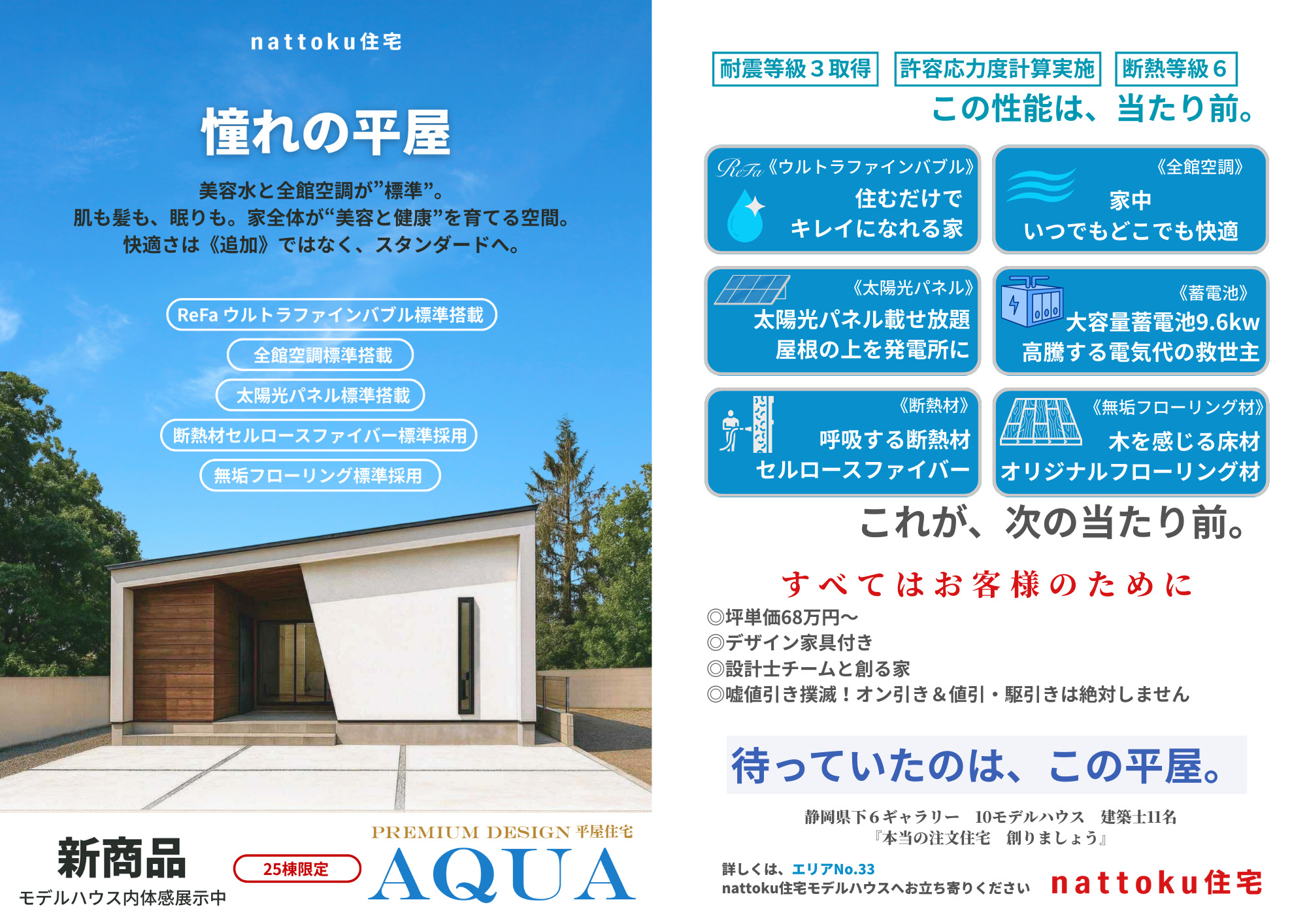 【限定25棟/平屋キャンペーン】心地よさと美しさ、そして安心の性能を兼ね備えたプレミアムな平屋「AQUA」誕生!