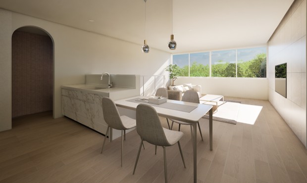 タイル・デザイン性のあるアイアン手摺・ペンダントライトを使用した可愛らしい内装