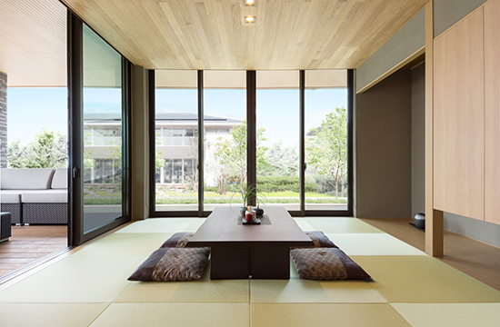 - ウッドデッキ、広いバルコニー、全館空調、全開放サッシ、フラットサッシ(レベル)、高気密・高断熱構造