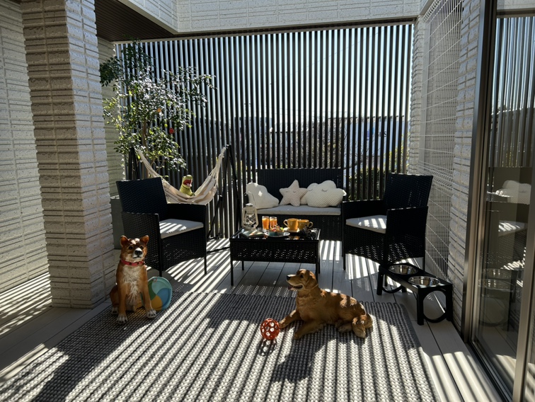 徒歩0分で行ける半屋外のアウトドアスペース。