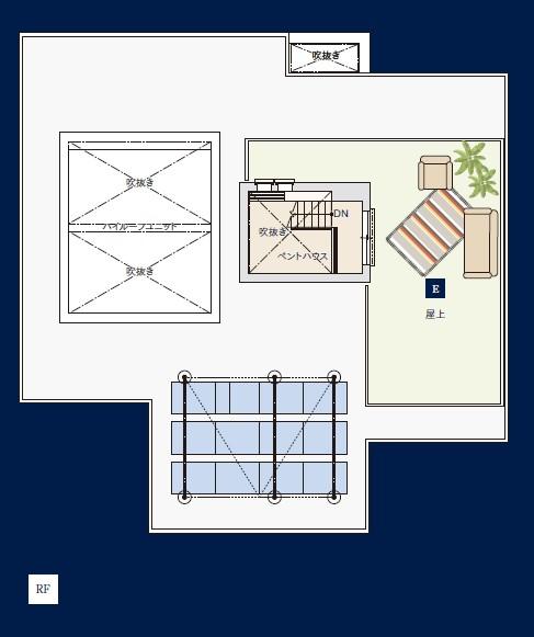 - ビルトインガレージ、ウッドデッキ、屋上利用、広いバルコニー、床暖房、浴室換気暖房、24時間換気システム、全館空調、暖炉、ペアガラス、全開放サッシ、フラットサッシ(レベル)、レジリエンス住宅、高気密・高断熱構造