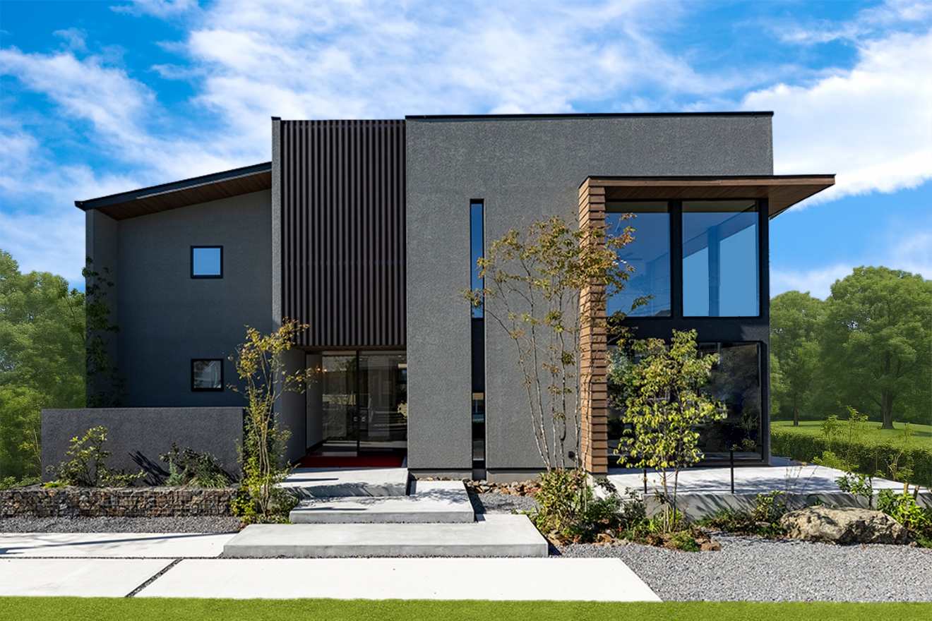 AQダイナミック構法を活かし、大開口をコーナーに配置した温もりあふれるモダンテイストの外観の建物です。間取りはスマートな家事動線に配慮しています。家族の絆を育めるような仕掛けも必見です。安心・安全の耐震性を担保しながら、大開口・大空間を実現するアキュラホームの建物を体感ください。