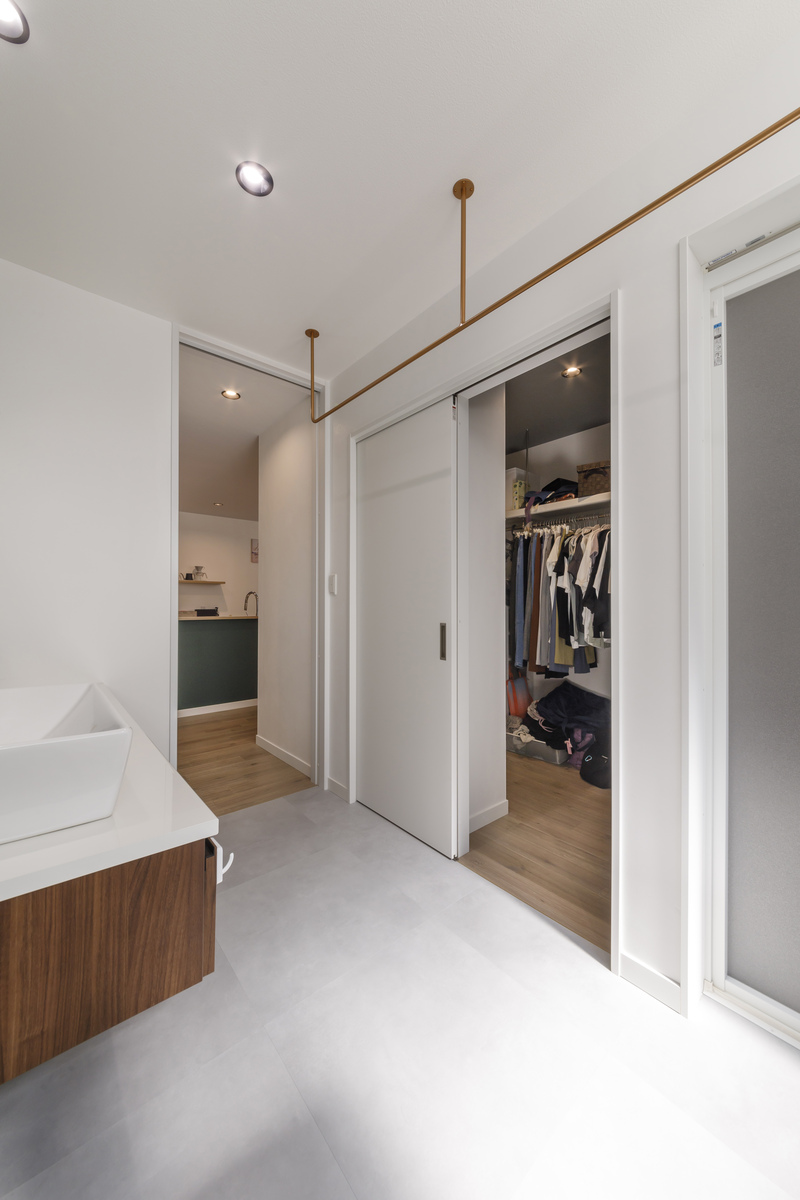 洗面脱衣室と隣接するウォークインクローゼットで着替えてからLDKに入るので、部屋が汚れずにすみます。