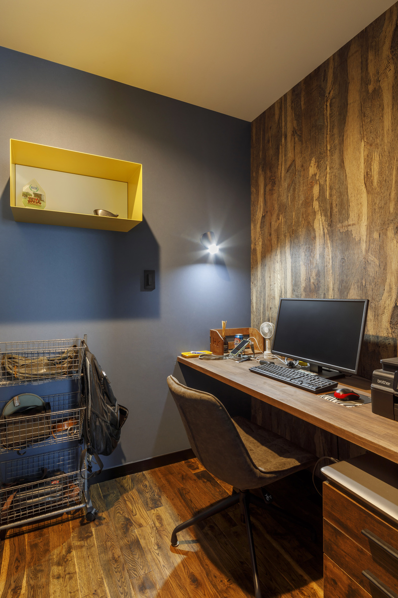 ご主人の書斎は木目を基調としたモダンデザインに。