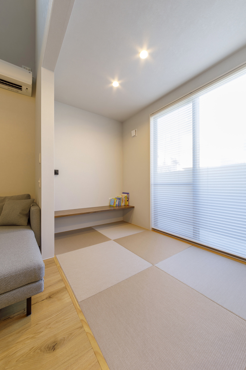 リビングの一角に設けた3帖の畳コーナー。お子様がおもちゃを広げたり、ごろりと横になって本を読んだり、家族みんなが自由に寛げます。