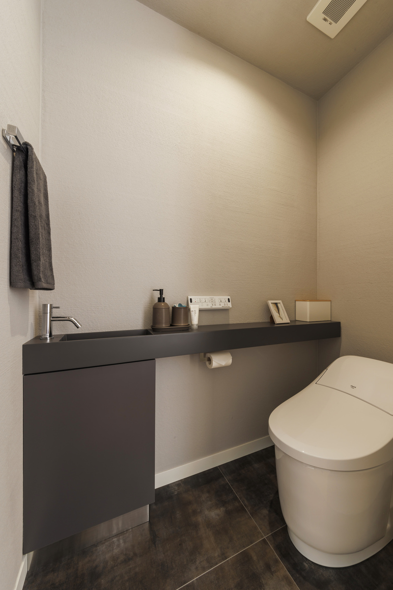 グレートーンでコーディネートしたトイレな無駄を省いたデザインに。