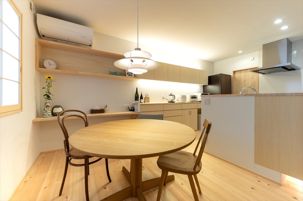 内障子のある和モダンなダイニング。造作カウンターにはお気に入りの雑貨を並べています。