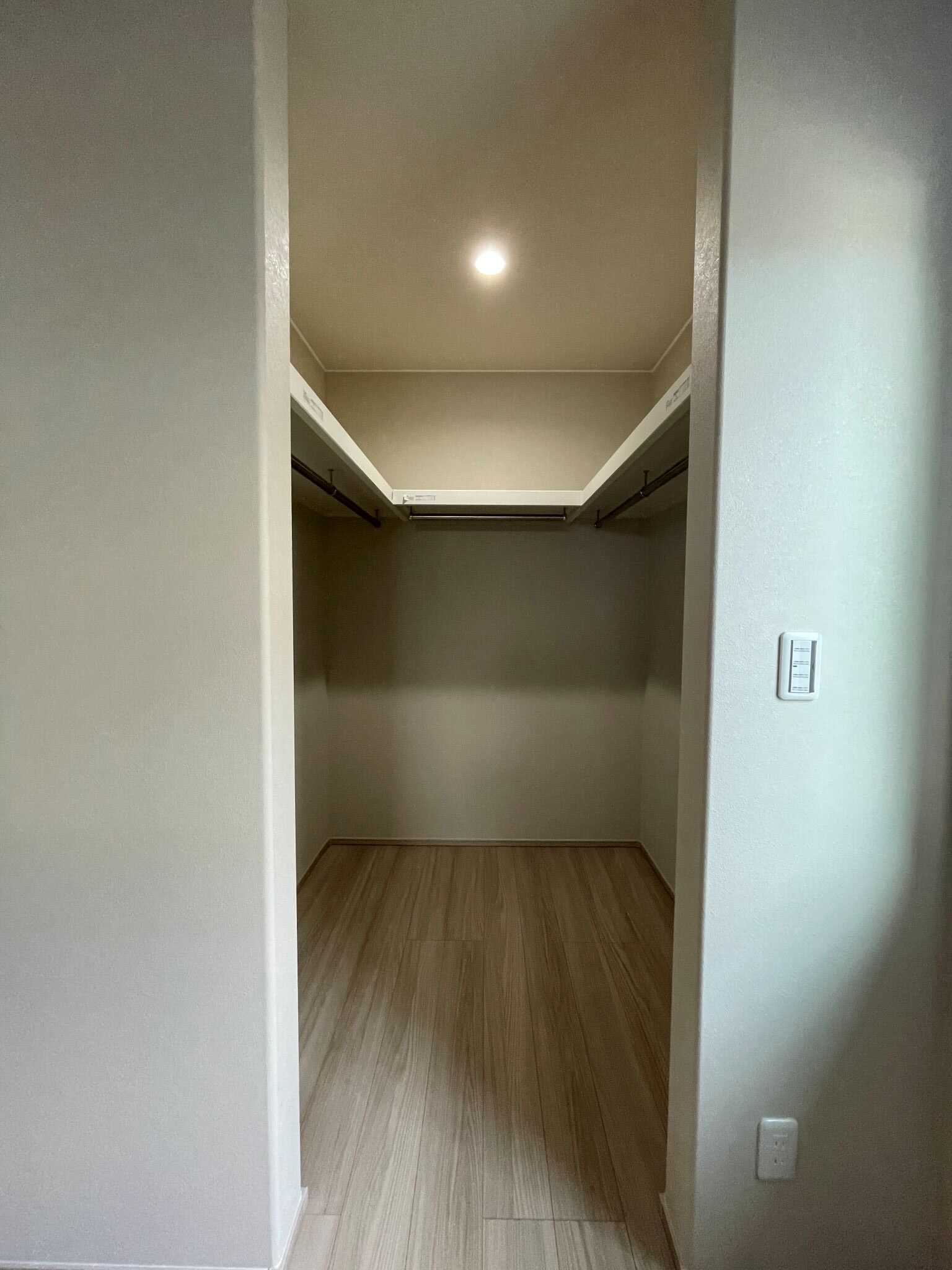1階に2帖のウォークインクローゼットがあり、たっぷり収納可能。扉を付けないことで、収納時に開け閉めする必要がなく◎。