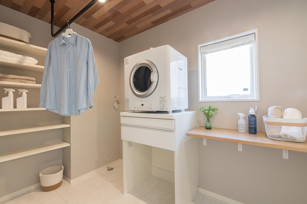 「1階で日常生活が完結する」をコンセプトに、主寝室・ランドリールーム・収納スペースを1階に配置した、「平屋ライク」なモデルハウス。