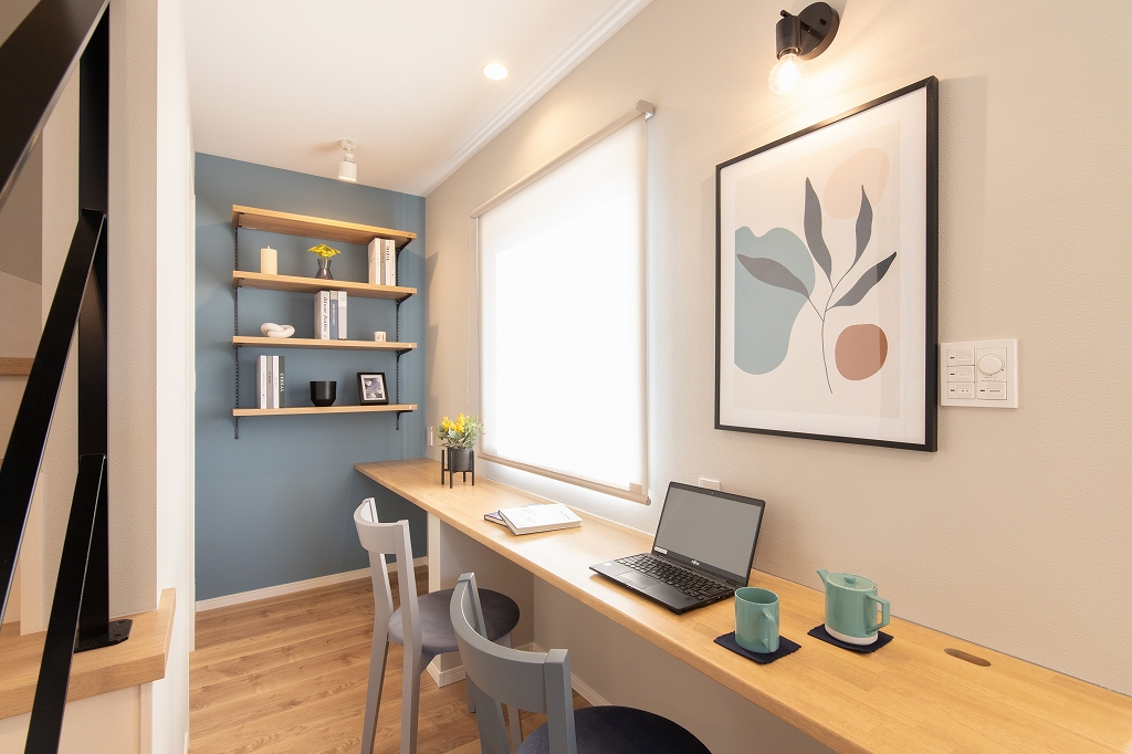 主寝室・ランドリールーム・収納スペースを1階に配置。日常生活が1階で完結する「平屋のような住み心地」を追求したモデルハウスです。 階段の昇降を減らすことで「家事ラク」を実現。また、2階の子ども部屋は、お子様が独立された後は、ゲストルームや書斎などに活用することができます。 ライフスタイルや家族構成が変化しても、長く快適に暮らせる住まいです。