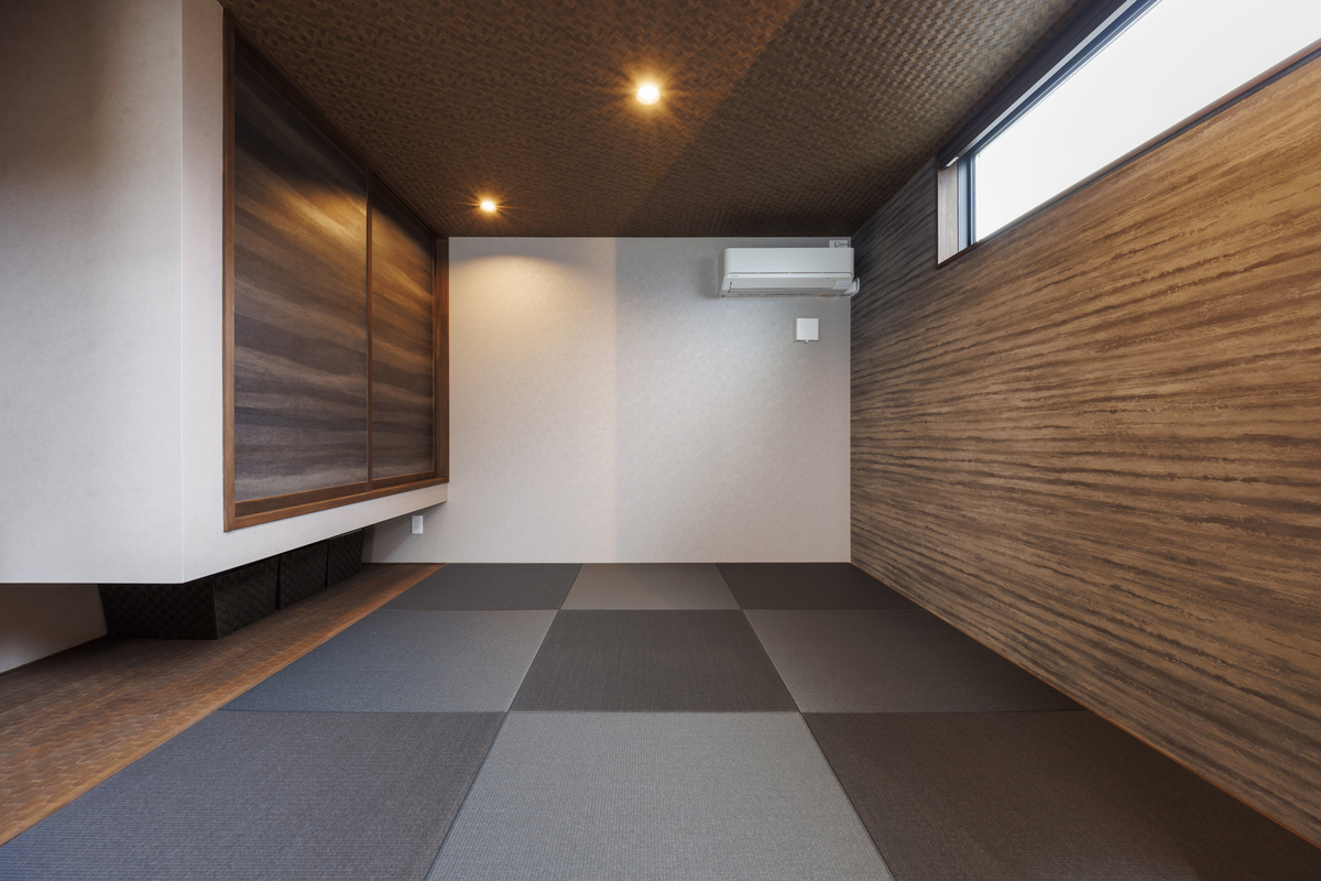 リビングに隣接した小上がりの畳コーナー。赤ちゃんのオムツを替えたり、お昼寝をさせたり。お客様の寝室としても重宝しています。吊り押入れを採用して広く見せると同時に、天井を低めに抑えたことでよりリラックスできる空間になりました。