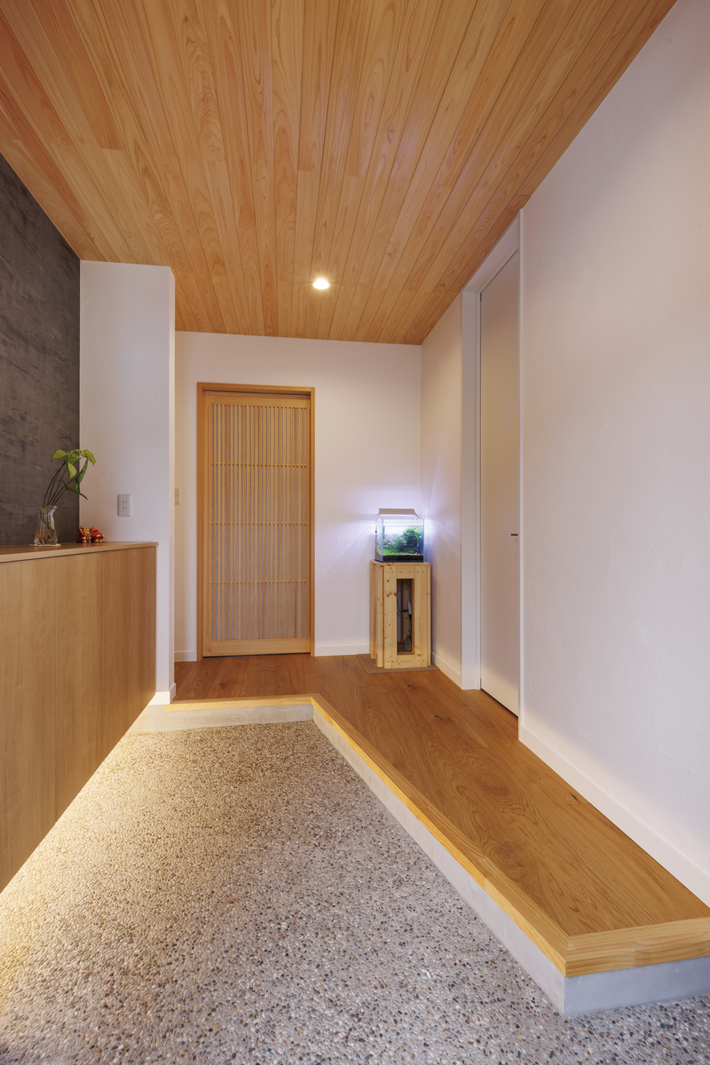 日本建築伝統の「洗い出し」で仕上げた玄関ホール。