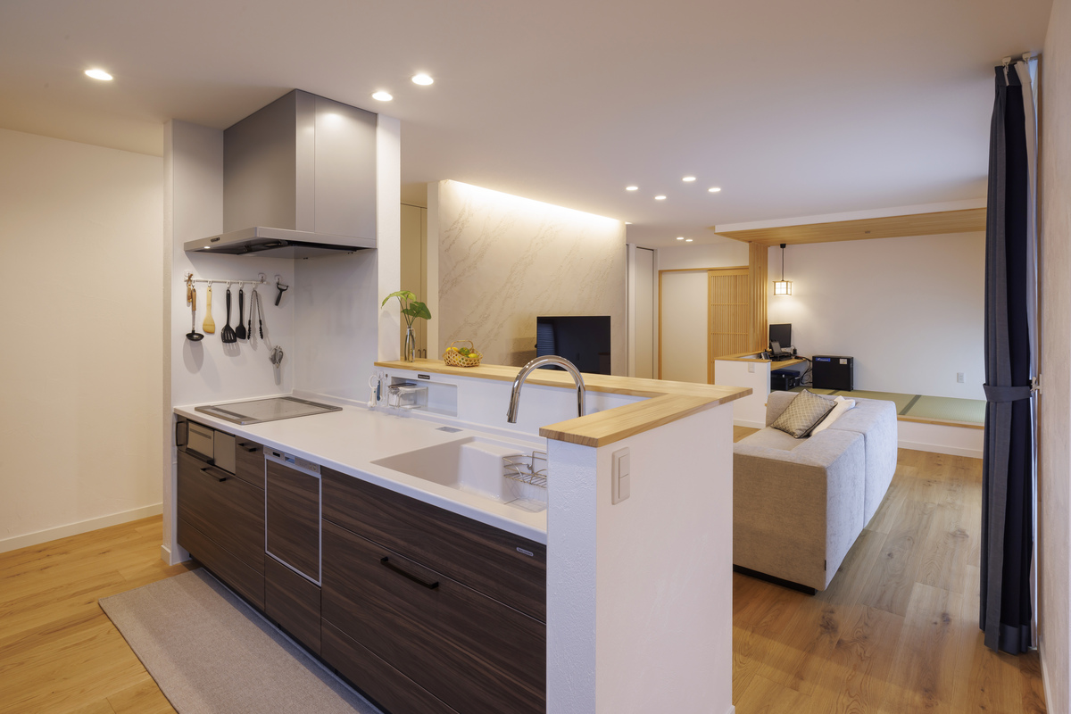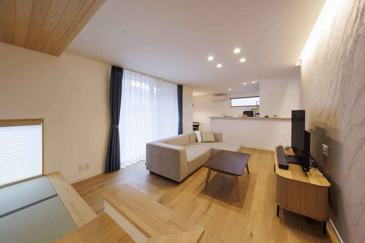 和の雰囲気と木の風合いが引き立て合う、穏やかなLDK。