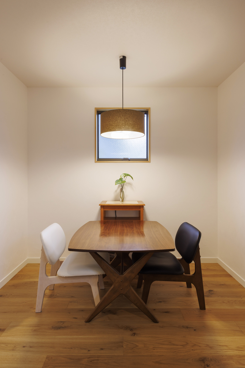 食事の時間を大切にした、シンメトリーな配置が心地よいダイニング。