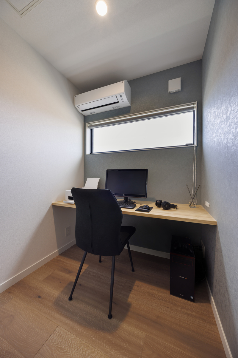 2階にあるご主人の書斎。「男の隠れ家」のようなおこもり感があって、作業に集中できそうです。窓の大きさと位置にもこだわりました。