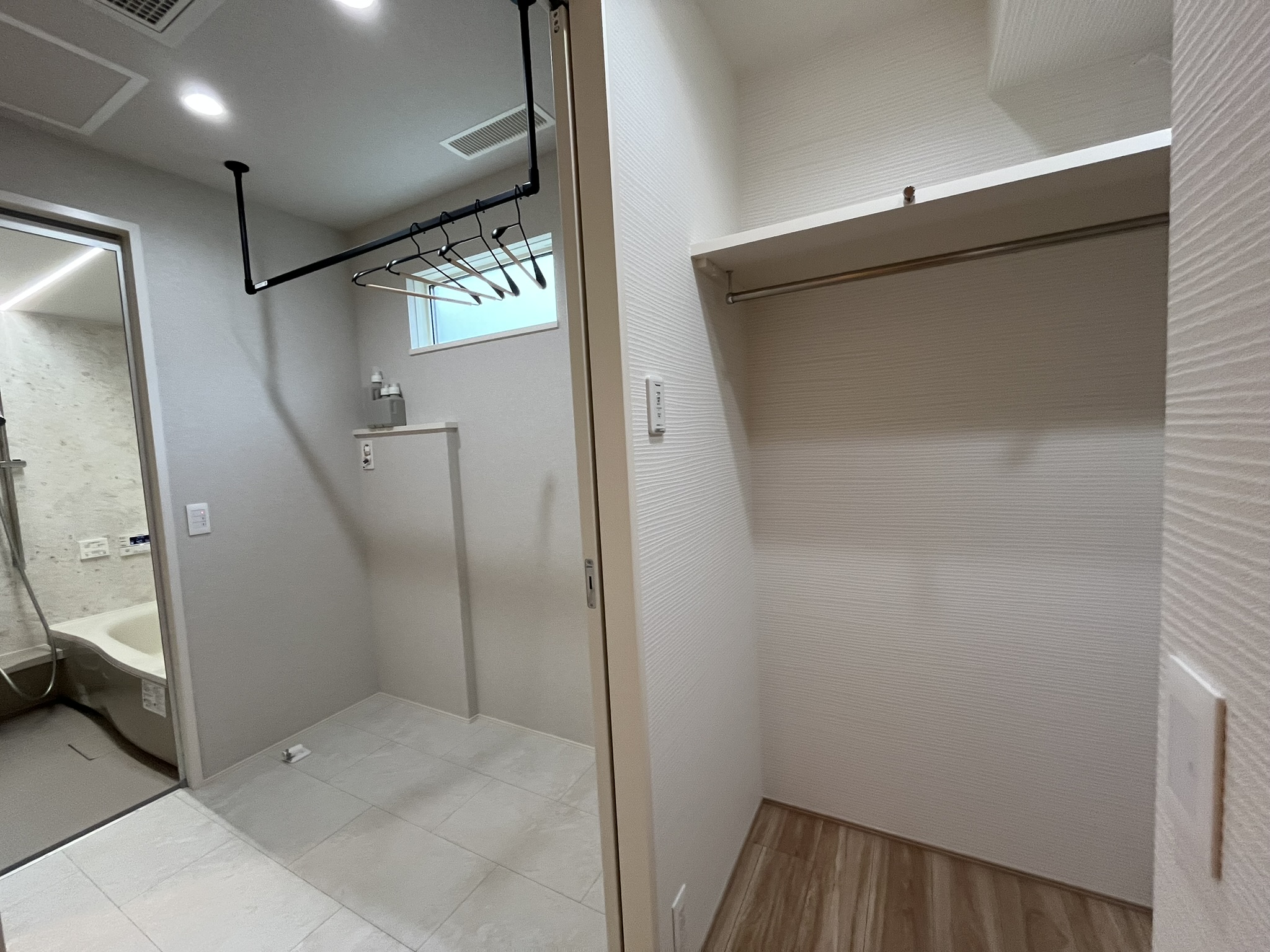 脱衣兼ランドリーは、寝室内のWICと隣接する設計に。洗う・干す・しまうの動線を最短で叶えます。