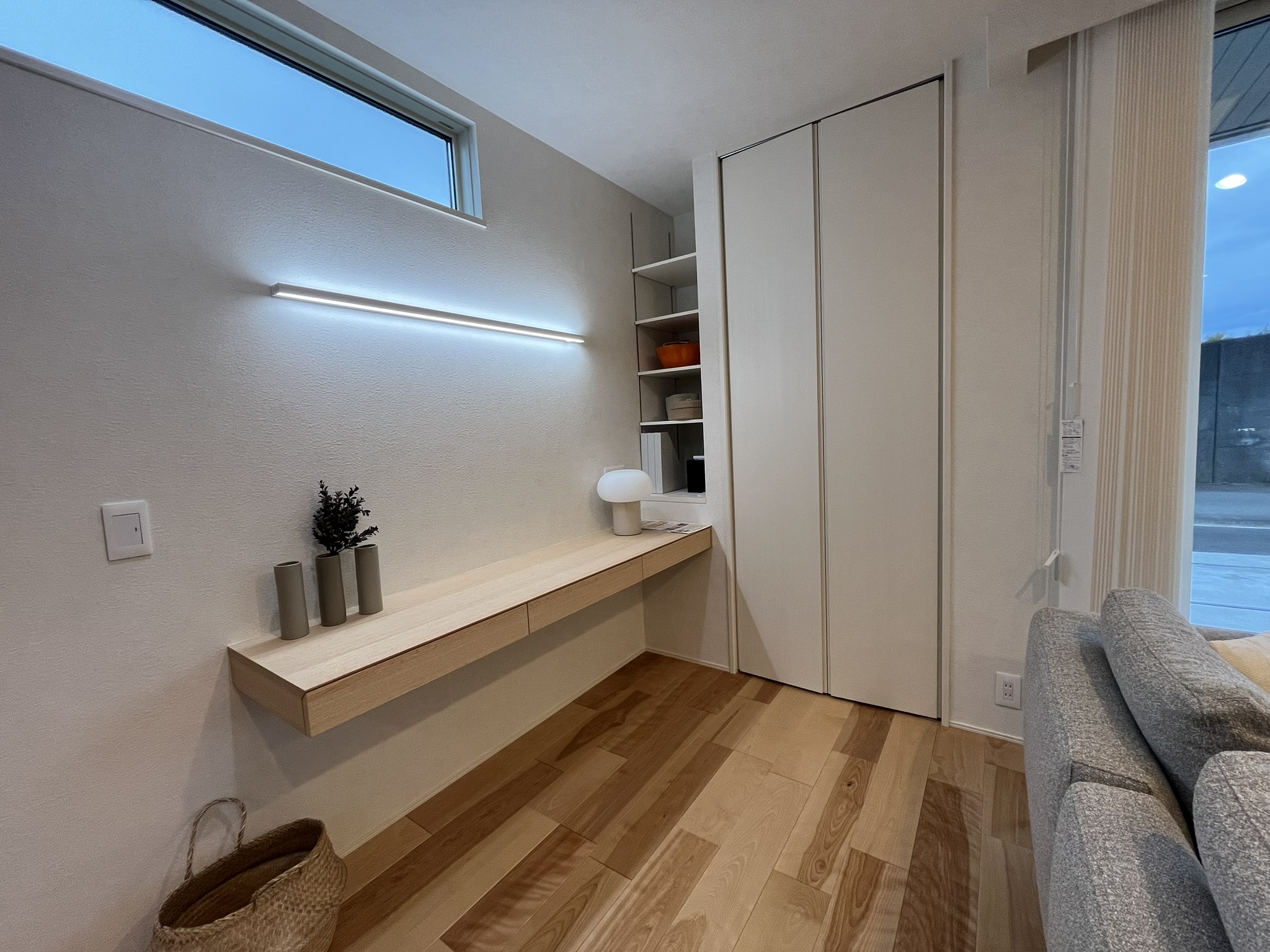 リビングの一角には、ワークカウンターを設けました。家族の気配を感じながら作業ができます。お子様が宿題をやるのにも◎